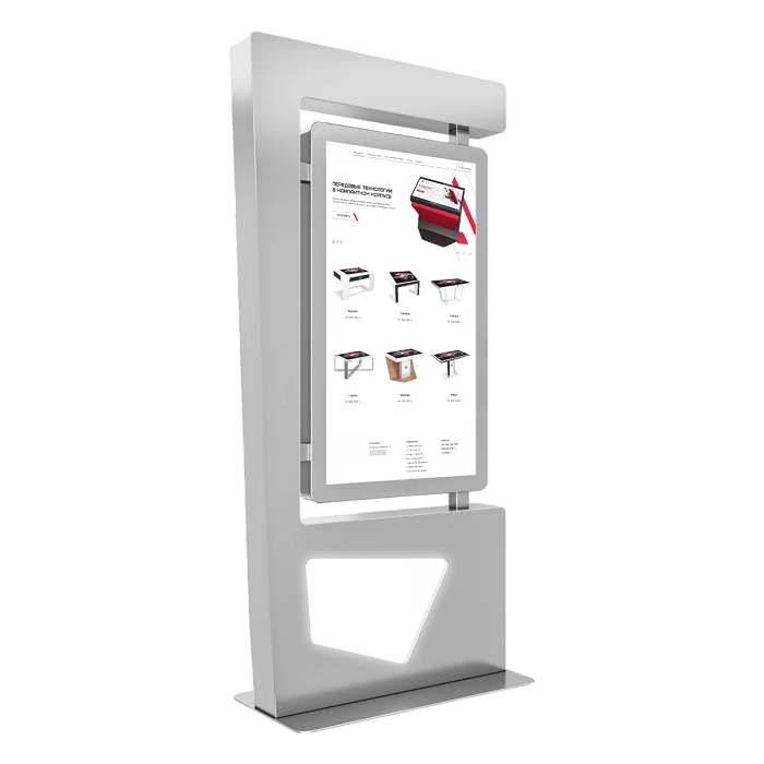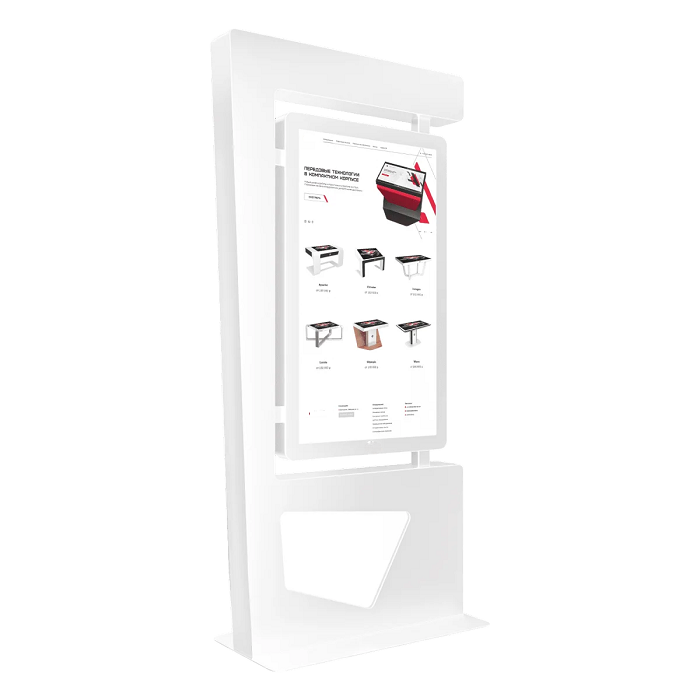 Сенсорный киоск Line 55" — это оригинальное и функциональное решение для автоматизации процессов и привлечения внимания посетителей. Минималистичный корпус с «парящим» сенсорным экраном и геометрическим основанием делает эту модель настоящим акцентом в любом интерьере.